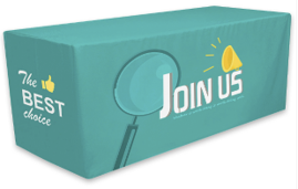 Available in 6ft, 8ft, and custom sizes. Stretch, fitted, or draped styles with open or closed backs available